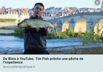 Grâce à Timfish YouTube, j’ai pu rassembler une communauté de passionnés qui me suit dans mes aventures : float tube, street fishing, pêche au pain, tests de leurres, tutos et explorations des meilleurs spots du 41.